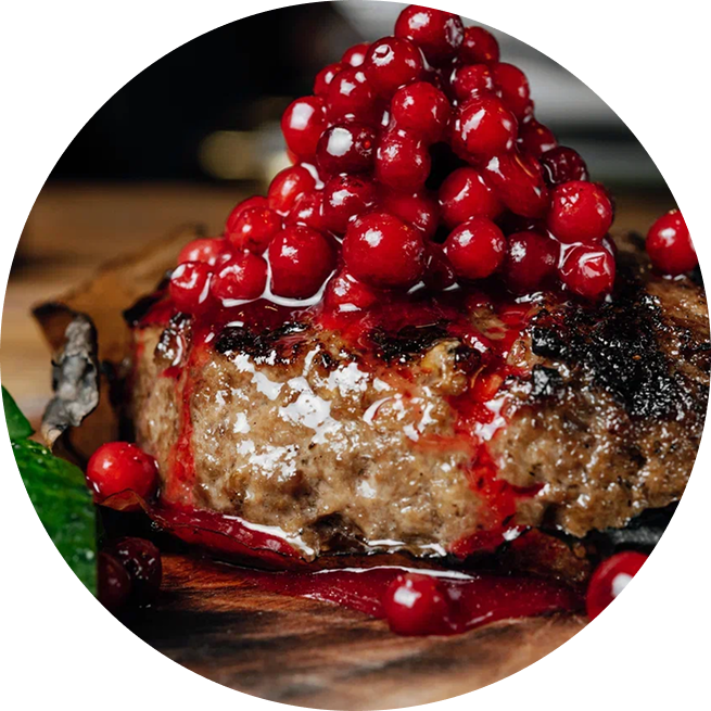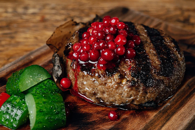 Говяжья котлета «Горыныч» с брусничным соусом