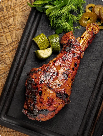 Запеченная голень индейки с соусом унаги